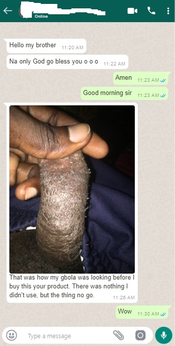 My husband had his own symptoms too. He gets a white milky discharge from the tip of his manhood in the morning, he also experiences pain when urinating, and always had a frequent urge to urinate regularly.